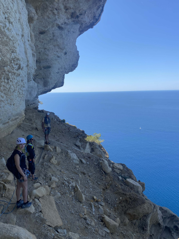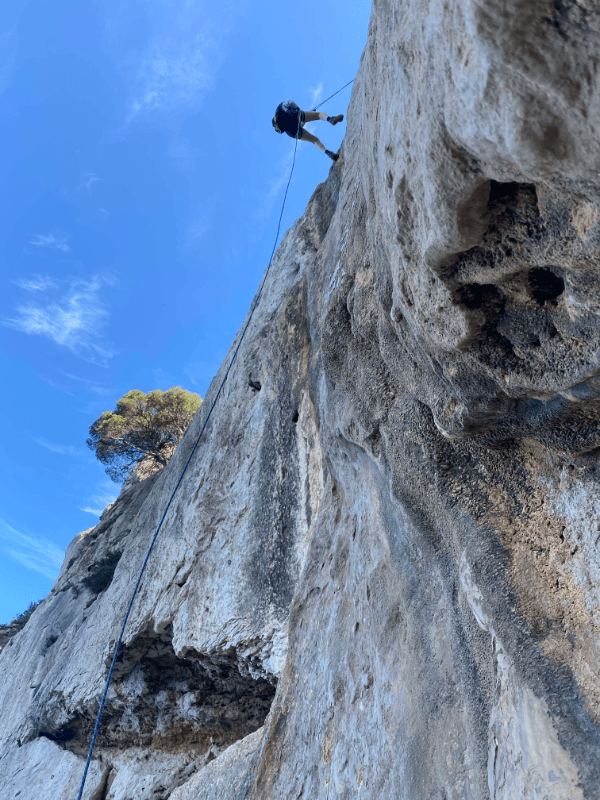 Le rendez-vous est fixé à 8h30 sur le parking du Sémaphore, mais cela signifie un départ à 7h du domaine. Après seulement 10 minutes de marche, nous arrivons au premier rappel. Nous enchaînons ensuite les descentes, chaque fois plus exaltantes. Attention, ceux qui souffrent de vertige doivent s’abstenir, car la vue est tellement vertigineuse qu’elle pourrait vous donner le tournis! Après trois rappels, nous rejoignons enfin le fameux sentier. Une ascension de 2 heures nous attend, et à 12h30, nous retrouvons le parking, les yeux écarquillés par la splendeur des paysages que nous venons de conquérir. L’heure de la pause bien méritée arrive, direction le port de Cassis : poisson frais ou crêpe complète, qu’allez-vous choisir?
